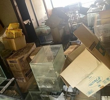 一軒家ですが築年数がかなり古く最近住んでいる様子もなく、物置倉庫として使われていたようです。ペットショップの物置に使っていたのか、水槽がかなり多いです。
