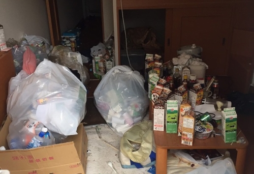 ご兄弟様からの依頼でお部屋でお亡くなりになられて1日~2日後に発見されたようで、お気持ち的にご遺族の方はお部屋に入られたくないとのことでしたので、立ち合いはいただきましたがお見積から作業まで弊社スタッフのみでさせていただきました。