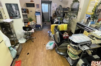 1階が理容院で2階を自宅として使っていた物件を退去するのにあたって、室内に残る家財と理容院で使用していた設備や一部内装を撤去しました。 1階の理容院です。 理容院や美容院にあるよう…