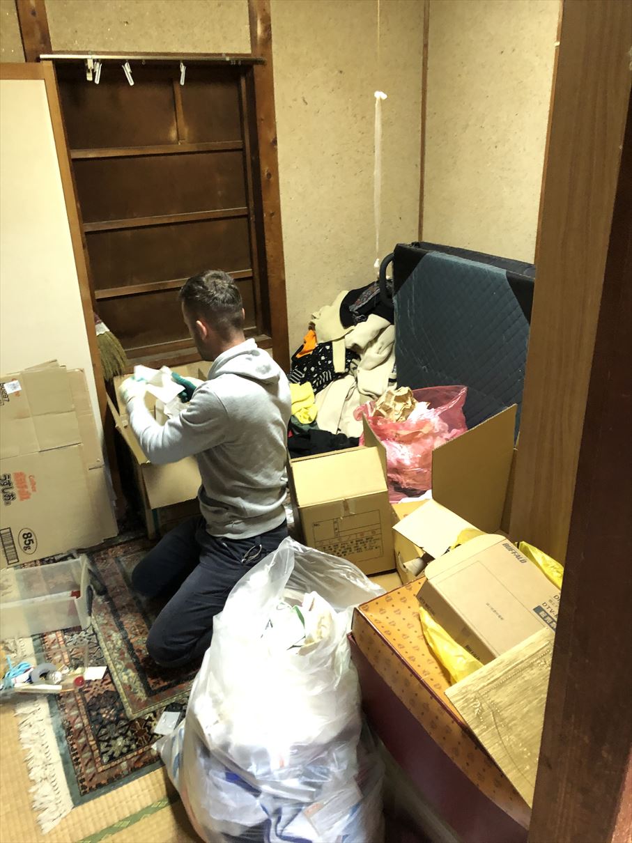 収納の中などもそのまま置いておいていただいてて結構ですし、中を確認して不要なものを部屋の一カ所に裸で山にしておいていただいても大丈夫です。