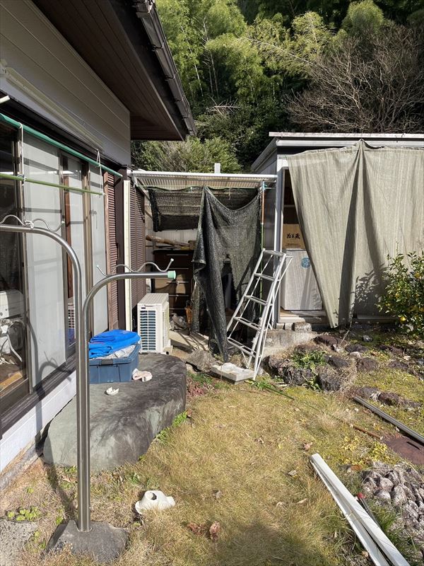 お庭もかなり広いです。広いだけあって荷物もたくさんあります。