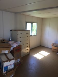 ご主人さんとスタッフ1人でプレハブの中、奥様プレハブ入口、スタッフ2人はプレハブから出た品物をひたすらトラックに運搬、積み込みという形で行いました。