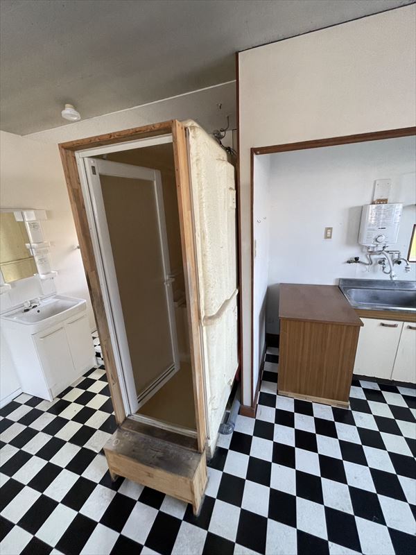 事務所として使用していたときの、トイレ、シャワールーム、洗面台、キッチンなどがあります。
