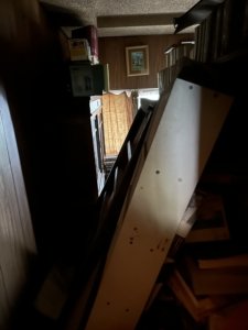まず各部屋の見積もりを行い、金額を計算していましたが数か所棚や段ボールが倒れていてバリケードみたいになっており部屋に入る事が出来ませんでした。