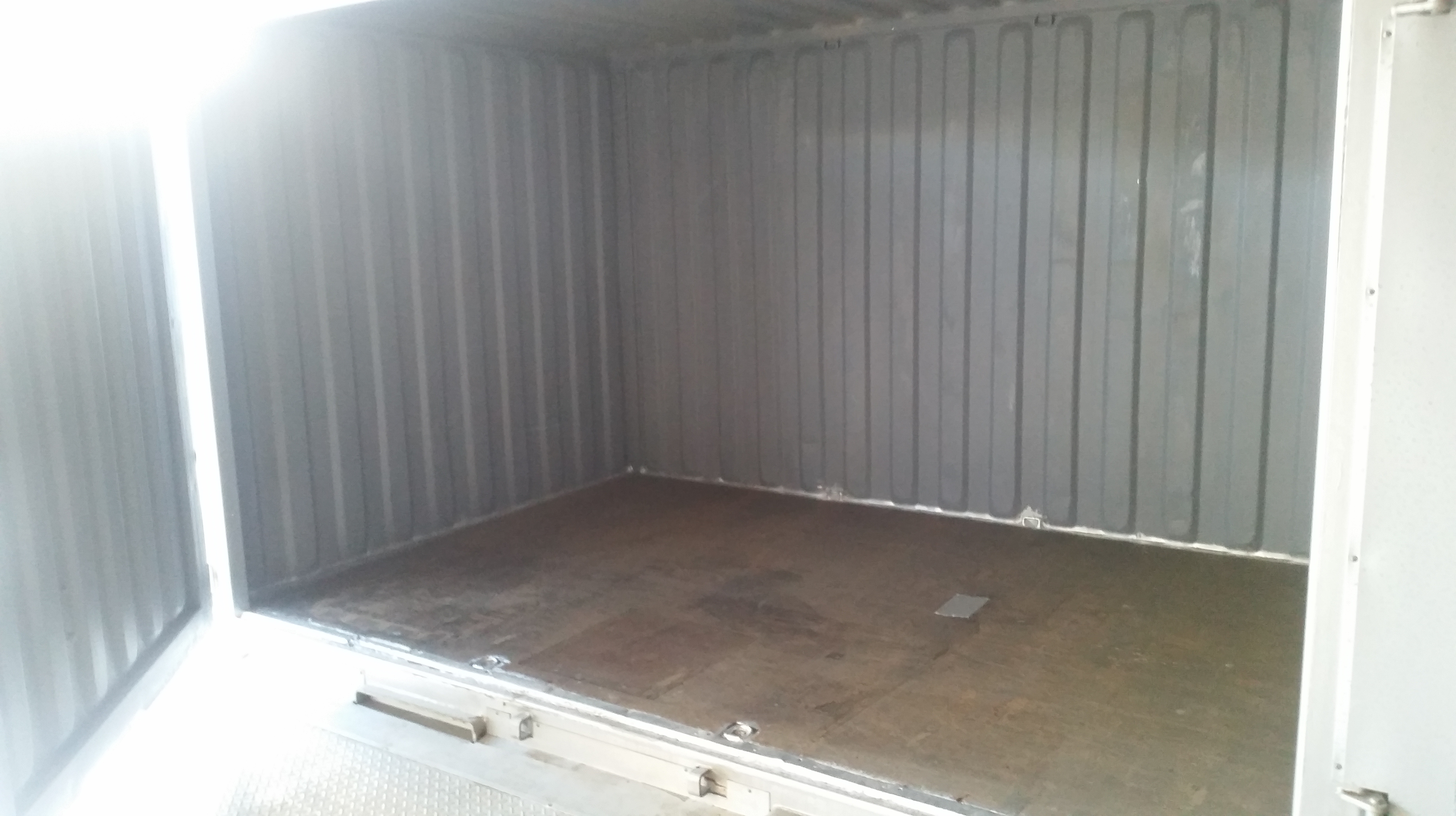 コンテナ内にはタンス・ダイニングテーブル・大型冷蔵庫・テレビなどの商材が30点ほどあり