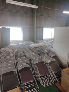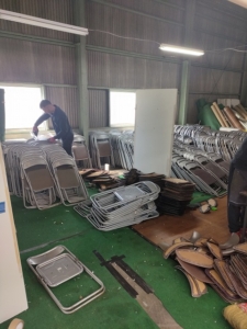こちらの企業様は消費者の方に商品説明会をされるそうでその度に椅子を用意してずっと使っていた椅子が痛んできたので、新しく買い替えるということで作業のご依頼を受けました。
