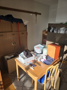 今回の事例紹介は介護施設から別の介護施設への入居に伴う生前整理となります。ご依頼者は入居者の息子さんで前施設先に残った家具家電その他を立ち合い無しで片付けて欲しいとのご要望でした。施設の間取りは広めの大きさの1DKかと思います。立ち合いなしでの見積もりでしたが施設取り付けの備品等もあるので施設の方に立ち合いして頂きました。冷蔵庫洗濯機は高年式の為、高価買取させていただきました。残置物ではダイニングテーブルとイス、タンスが3点とベッドが主に大きな家具で、納戸が2か所あり小物類が2立米ほど詰まってました。見積もり後すぐにお客様に連絡を取り成約となりました。