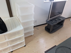 大きい物ですと冷蔵庫、洗濯機、テレビ台やテーブル等がありました。