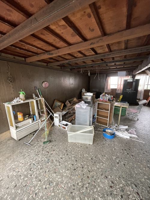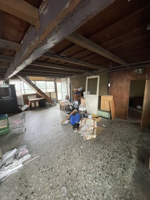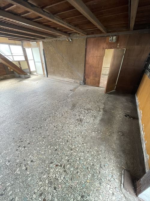 一階です。一階は広いスペースになっていて不用品が残されています。